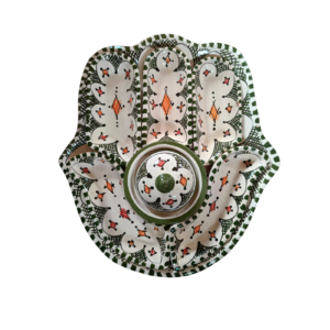Moroccan Khmissa Serving Set with Hand-Painted Colors (green and orange)