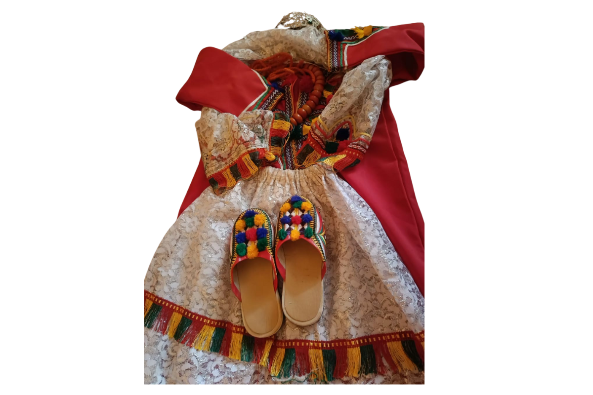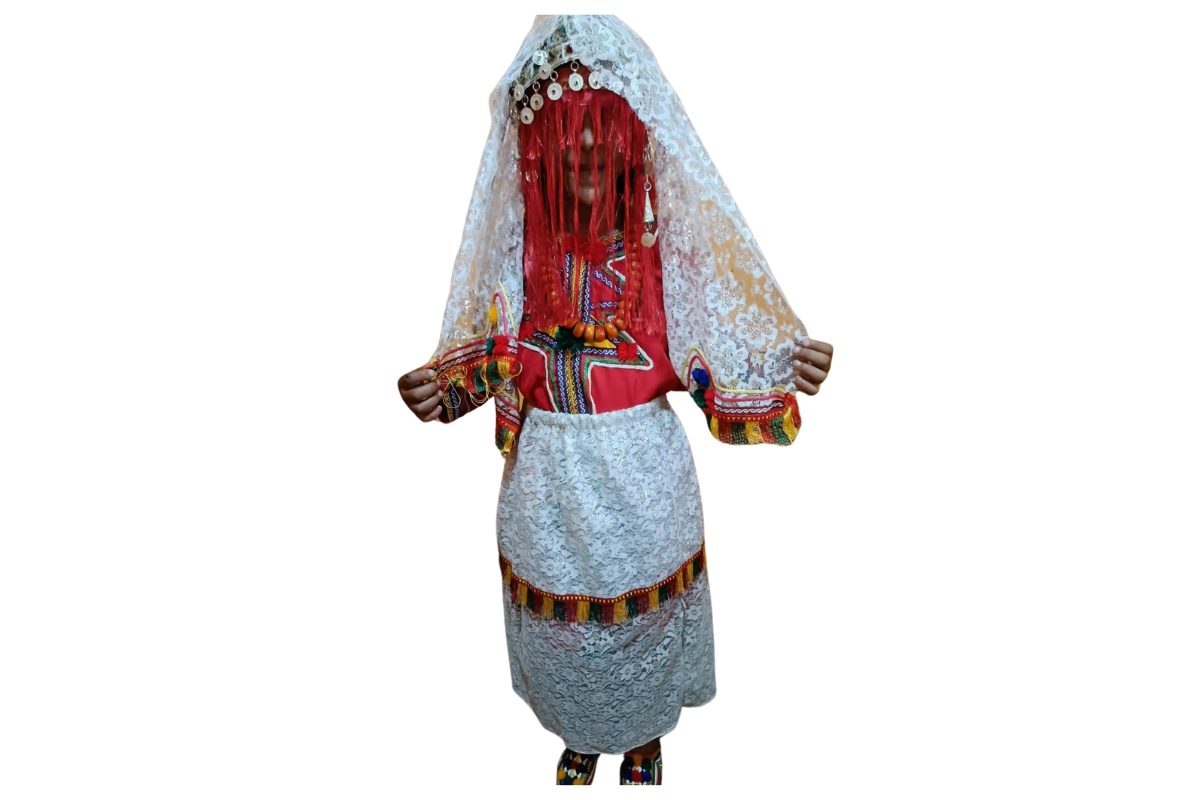 Embrace the beauty of Amazigh culture with this stunning set. Featuring a handwoven caftan adorned with intricate designs, matching shoes (blgha), and a beautifully crafted veil (zerka), this ensemble offers an authentic and timeless touch of tradition. Perfect for special occasions or cultural celebrations, this set is available in sizes for all ages, from young children to adults. With free delivery, experience the elegance of Amazigh heritage today.